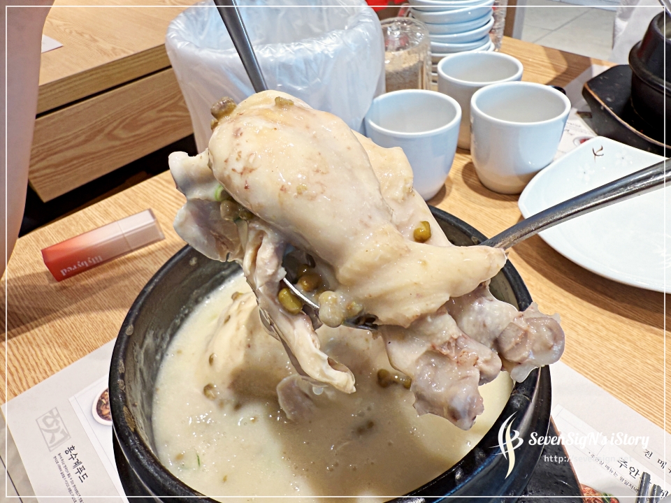 대표적인 메뉴는 삼계탕 3종~ 잣삼계탕, 녹두삼계탕, 전복삼계탕 있고,
