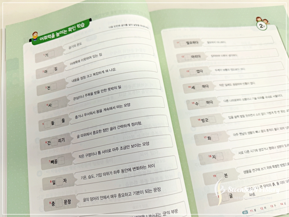 어휘의 뜻을 확인해보면 어휘력이 얼만큼 나아졌는지 점검해볼 수도 있을 것 같네요.