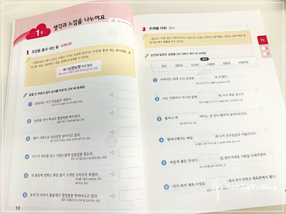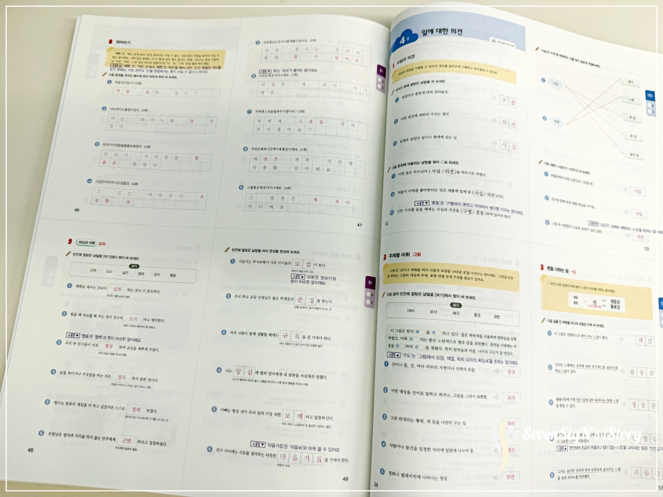 그만큼 어휘력을 확장하기에 좋은 짜임새 있는 구성을 보여주는 초등어휘문제집이죠.