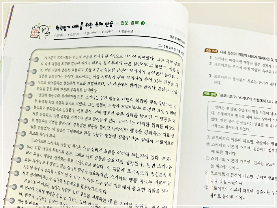 왼쪽에 읽을 내용과 오른쪽에 문제가 있어서 부담없이 학습할 수 있습니다.