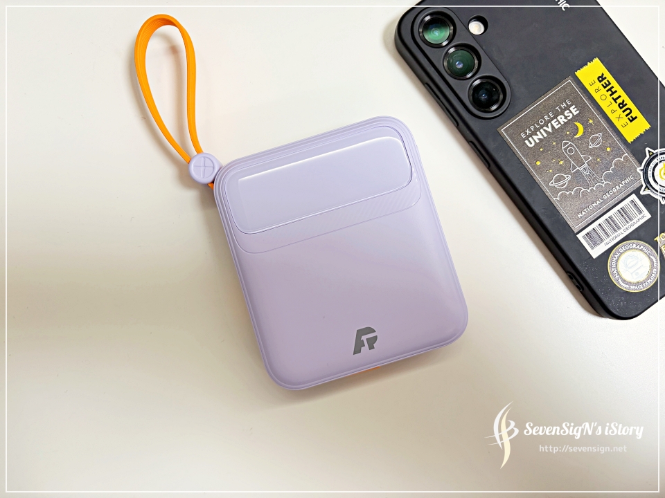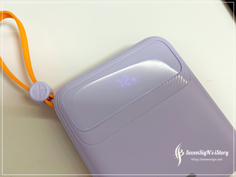 | 케이블 수납 부분도 꽤 탄탄하게 고정되어 있어서 흔들림이 없어요. 그렇다고 빼기 어렵지도 않고, 적당한 힘으로 부드럽게 분리되더라구요. 본체 오른쪽 측면에는 전원 버튼이 자리하고 있어요. 깔끔하게 배치되어 있어서 사용하기도 편하네요.반대쪽 측면에는 USB-C 케이블이 내장되어 있어 아이폰16 이상 모델이나 안드로이드 스마트폰까지 충전이 가능해요. 가장 많이 사용하는 두 가지 케이블이 모두 일체형으로 구성되어 있어서 활용도가 정말 높아요. 여행용 보조배터리로 특히 잘 어울리는 이유가 여기에 있는 것 같아요.