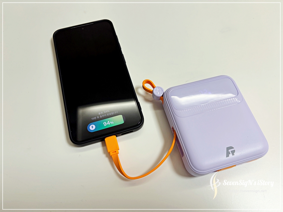 | 또 하나 좋았던 점은 일체형 케이블 외에도 추가 케이블을 연결해 사용할 수 있다는 부분이에요. USB-C 충전은 물론이고, 요즘은 사용 빈도가 줄긴 했지만 마이크로 5핀 케이블로도 충전이 가능해서 범용성이 뛰어나요. 고속 충전 케이블을 사용하면 고속 충전도 지원해서 충전 시간도 단축할 수 있어요. 여러모로 장점이 많은 제품이라는 생각이 드네요.