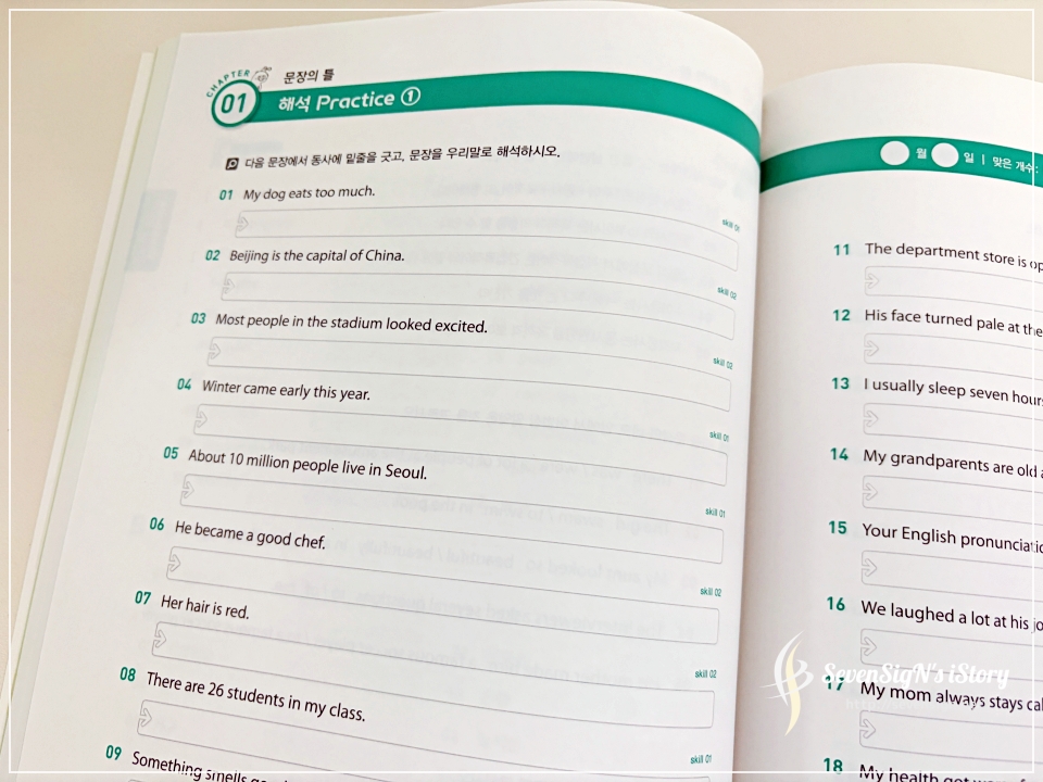 그래서 숨마주니어 중학영여 문장해석연습의 개념단위 학습을 스킬이라고 표시를 해둔 것 같더라고요.