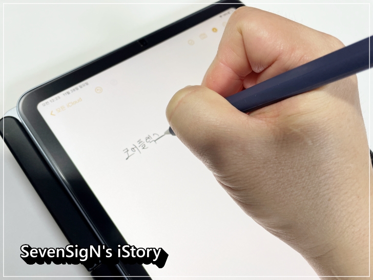 | 필기를 한번 해보는데요, 역시 강화유리나 액정위에 그대로 필기할 때와 다른 필기감이 좋습니다. 이래서 필기 자주하면 종이필름 쓰는게 나은 것 같습니다.