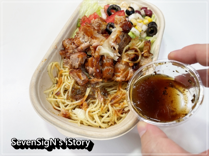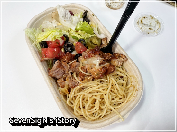 신선한 샐러드와 부드러운 바베큐 그리고 입안을 즐겁게 해주는 파스타면까지