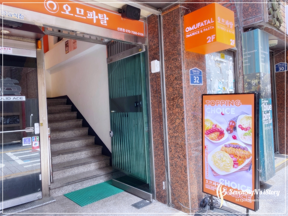 오므파탈은 신촌역에서 도보로 5분정도 거리 밖에 안되는 곳의 건물 2층에 있습니다.
