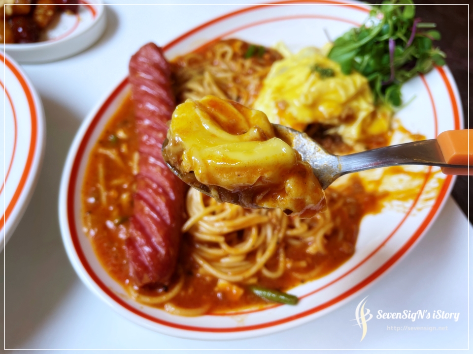 얘기한대로 파스타도 맛있고, 오므라이스에 파스타를 올려 같이 먹어도 맛있게 즐길 수 있더라구요.